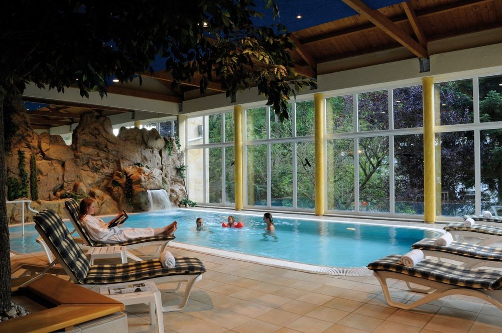 Der Wellnessbereich ist sehr gut ausgestattet: Hallenbad, finnische Sauna, türkisches Bad, Aromabad, Ruheraum mit geheizten Liegestühlen, Fitnessraum.