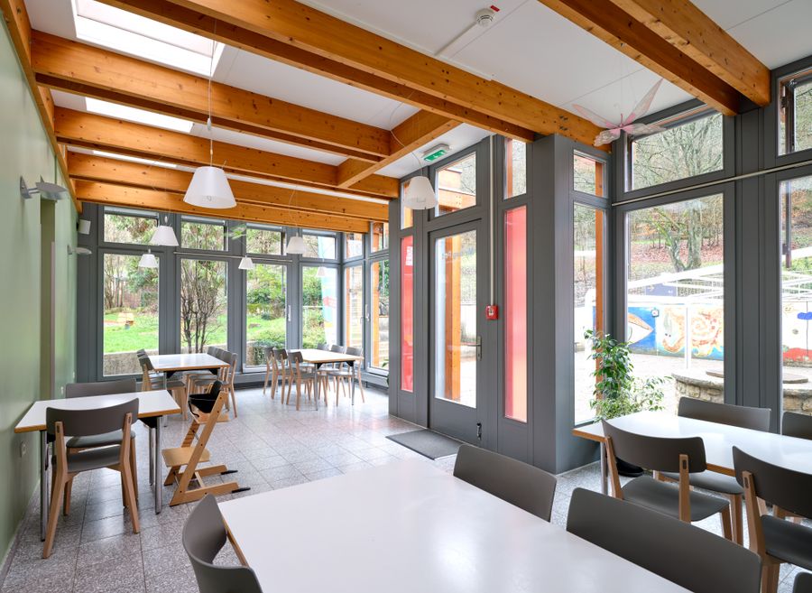 - Aufenthaltsraum mit Kamin und Spielecke für Kinder