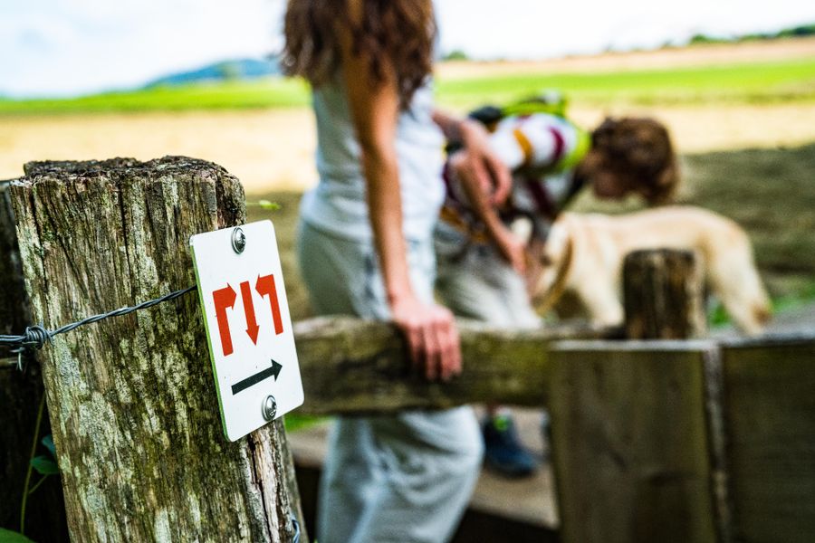 Bitte folgen Sie der "Minett Trail"-Beschilderung, der Sie in beide Richtungen des Weges folgen können.