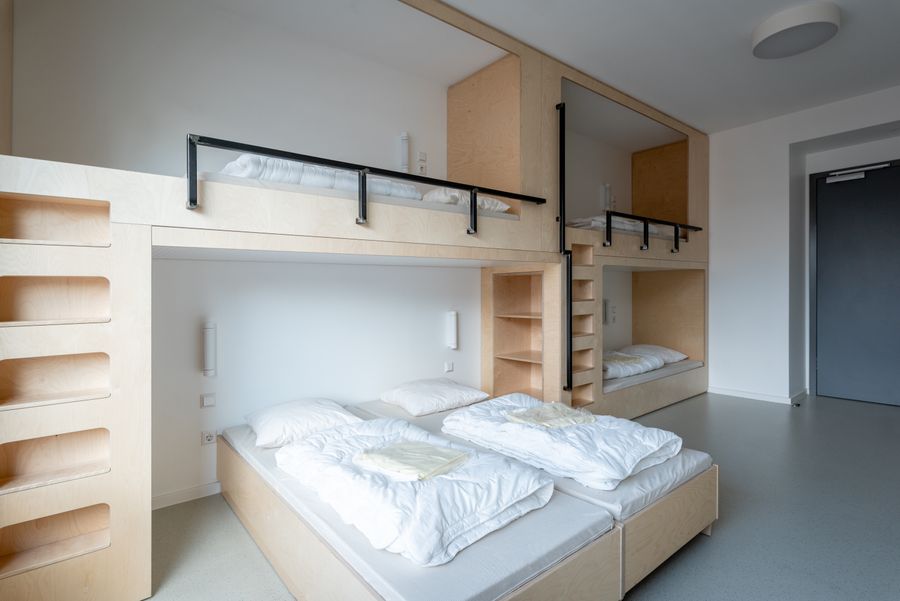 Installée dans un bâtiment ultramoderne inauguré en 2017, l’Auberge de jeunesse propose un total de 122 lits répartis sur 36 chambres avec salle de bains et comptant entre deux à cinq lits chacune. Mais ce n’est pas tout : le bâtiment, qui est entièrement accessible aux personnes à mobilité réduite, dispose d’une salle de conférence bien équipée ainsi que de quatre salles de réunion pour les séminaires et les conférences. Situé à côté de la gare routière et ferroviaire, et à quelques minutes de marche du parc de loisirs Gaalgebierg, ainsi que du centre-ville, l’Auberge de jeunesse est idéale pour des activités de toutes sortes et pour tous les âges. En fait, la direction créera des programmes sur mesure pour des voyages scolaires, des randonnées, des sorties à vélo et en VTT, et organisera des célébrations telles que des fêtes d’anniversaire pour les enfants. Laissez l’Auberge de jeunesse s’occuper de tout !