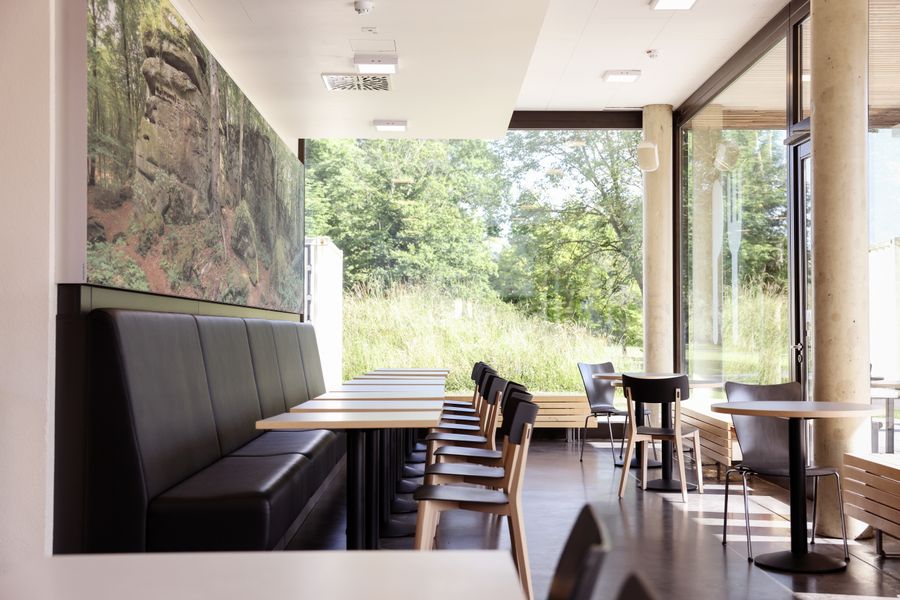 - Bistro with a view of the climbing wall