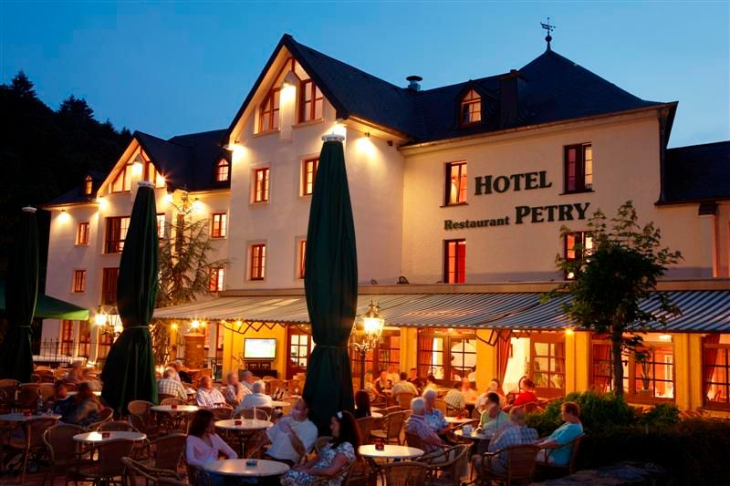 Petry is a modern, environment-friendly hotel overlooking the Our River and historic castle in the centre of Vianden. It benefits from free Wi-Fi, 2 restaurants and rooms with satellite TV. The hotel features a spa and wellness area including a sauna, solarium and small fitness centre which can be used for an extra charge. Guests can make use of the tour desk, bicycle hire and packed lunch services when exploring the local area. Hotel Petry has a restaurant which serves gastronomic cuisine in a cosy setting with wooden beams and rustic features. There is also a pizzeria with a traditional wood-fired pizza oven. The key sights of Luxembourg city, including the Palais Grand-Ducal and Notre-Dame Cathedral, are 50 minutes' drive away. Petry Hotel offers free public on-site parking. Hotel Rooms: 26. Hotel Chain: Logis du Grand Duché de Luxembourg.